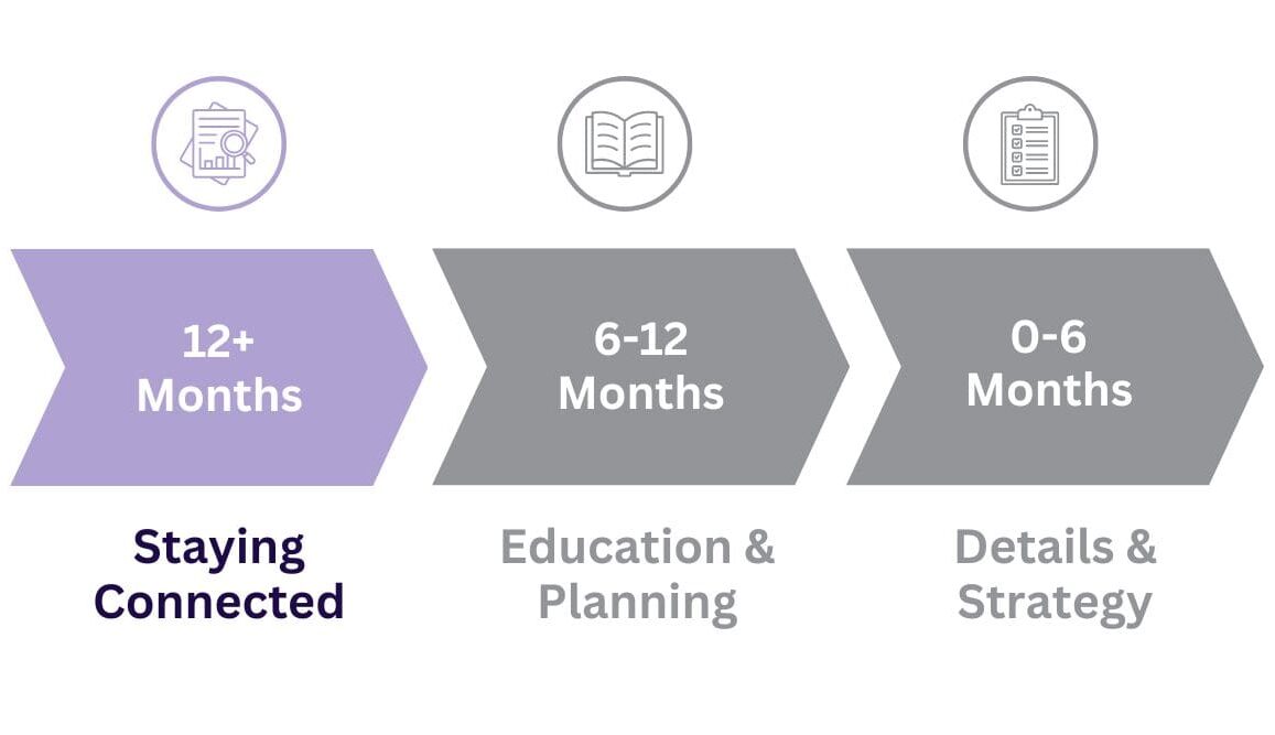If you’re thinking of moving in 12 months or more, this phase is all about longer-term planning. Even if your move isn’t imminent, staying connected to the market is key.