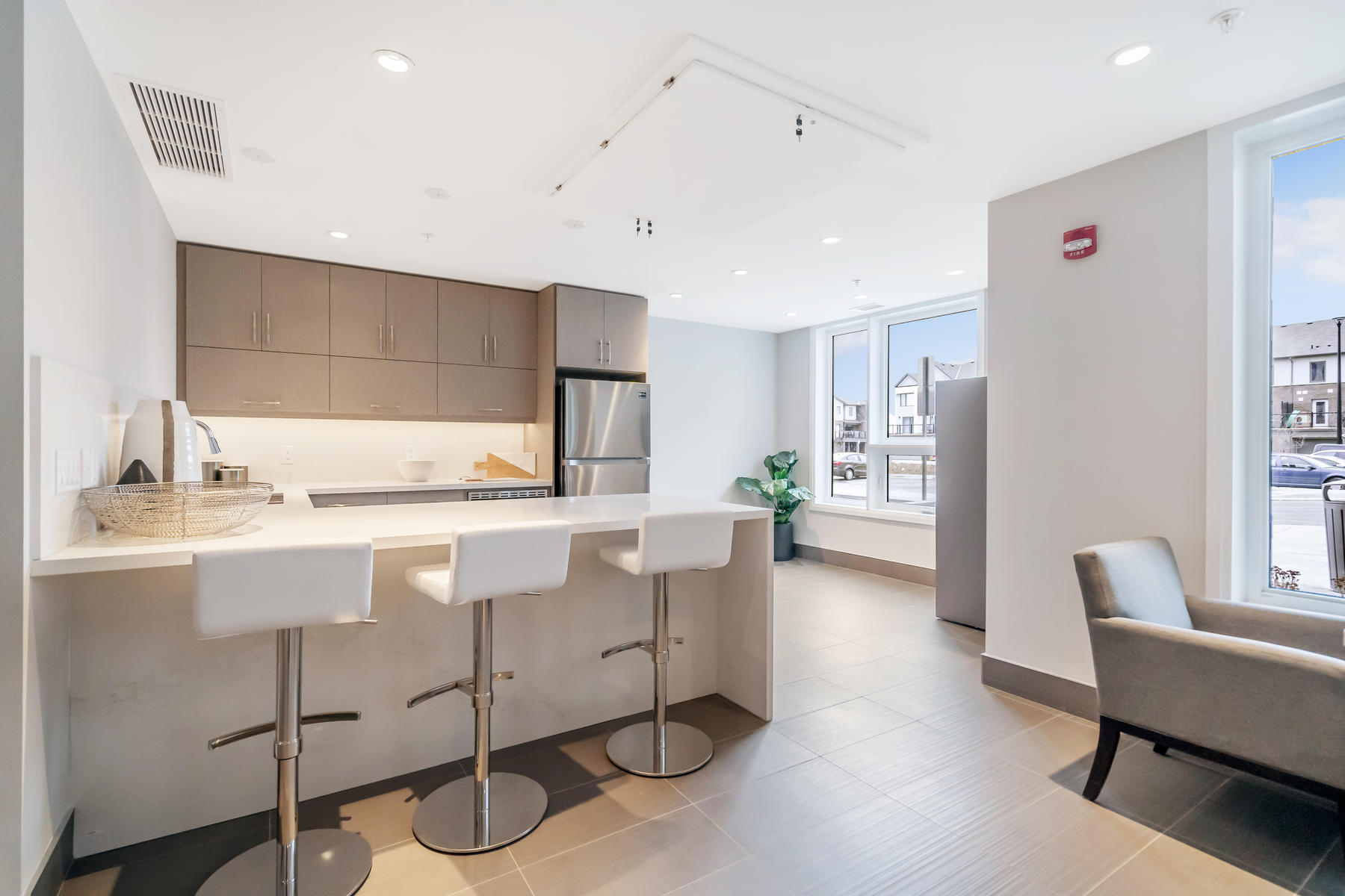 The building is across the street from a pond and is a short walking distance to a shopping plaza, and there are many public and Catholic schools in the area.