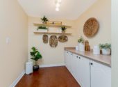 This condo also has an ensuite laundry room that’s large enough to accommodate additional storage space, complete with shelving.