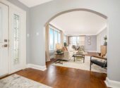 Greeting your guests at the front door will mean lots of room to kick off your shoes and hang your jackets. There is a double mirrored closet right when you walk inside. You will immediately notice the charm of the arched entry into the living room. The hardwood floors extend all throughout the main living spaces and bedrooms.