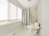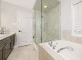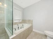 The primary bedroom offers a calm retreat with an ensuite washroom featuring a glass shower and a walk-in closet.