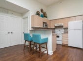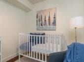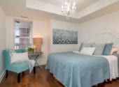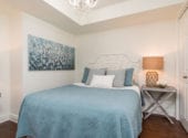 This condo is measured at 709 square feet but feels much larger in person. On the 4th floor of this building, owners enjoy tall 12-foot ceilings unique to this level. This condo is a one-bedroom plus a den, but the den is enclosed and it’s large enough to be a bedroom. The open concept layout is one of the best you’ll find in this price range. The breakfast bar in the kitchen is great for entertaining.