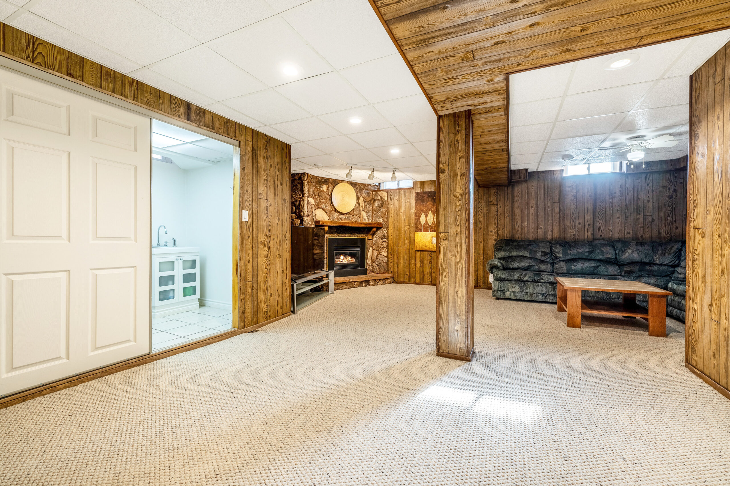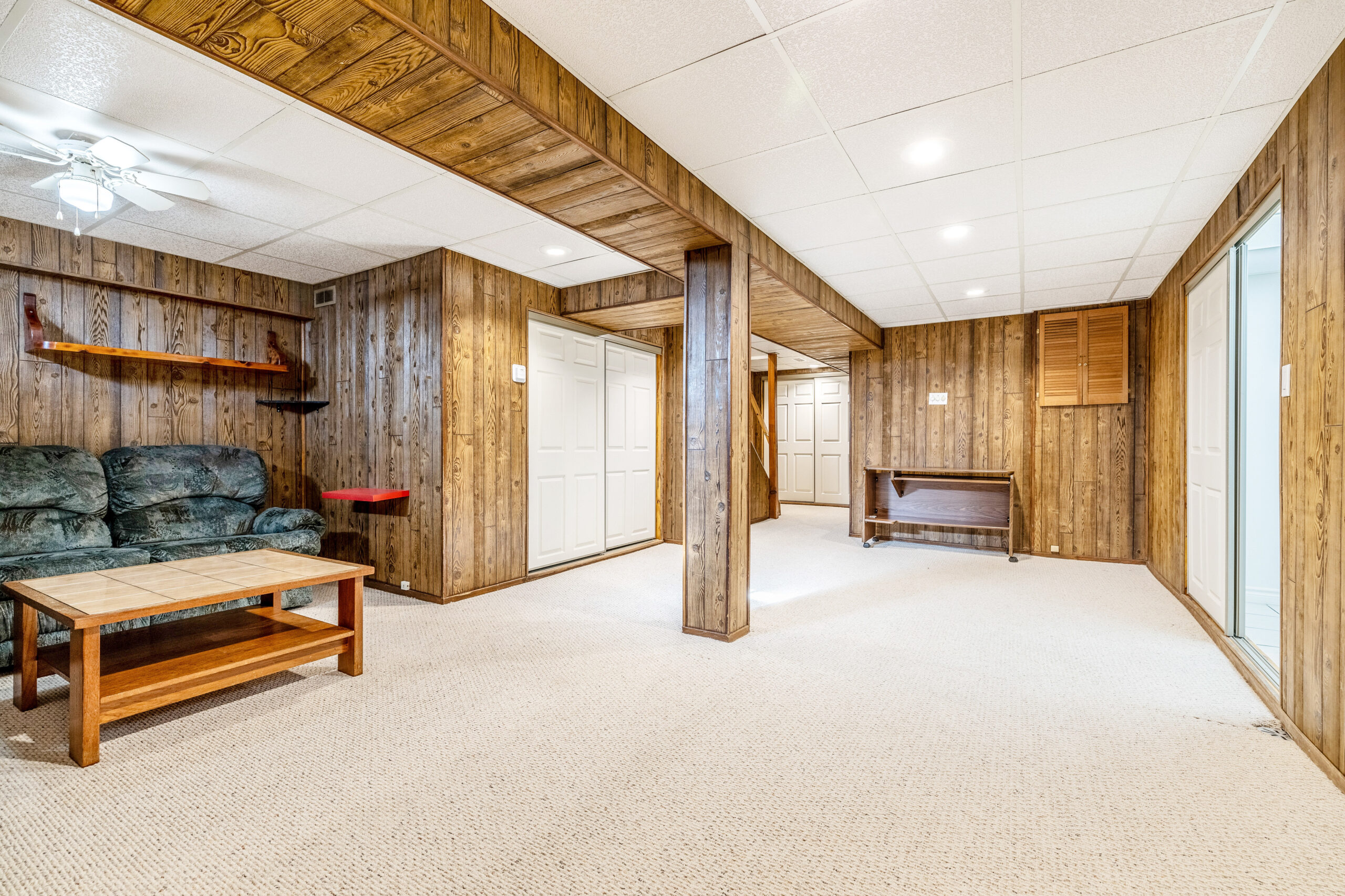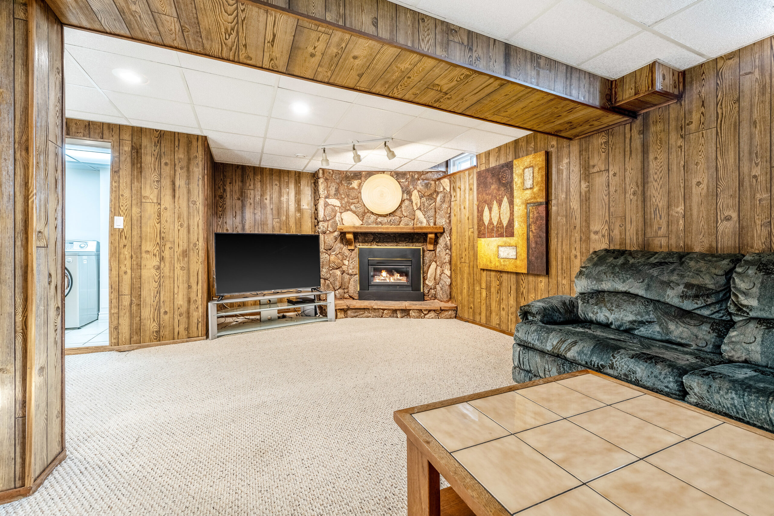 The finished basement serves as a versatile space, perfect for movie nights, parties, or simply relaxing. It adds an extra dimension to the home’s living space.