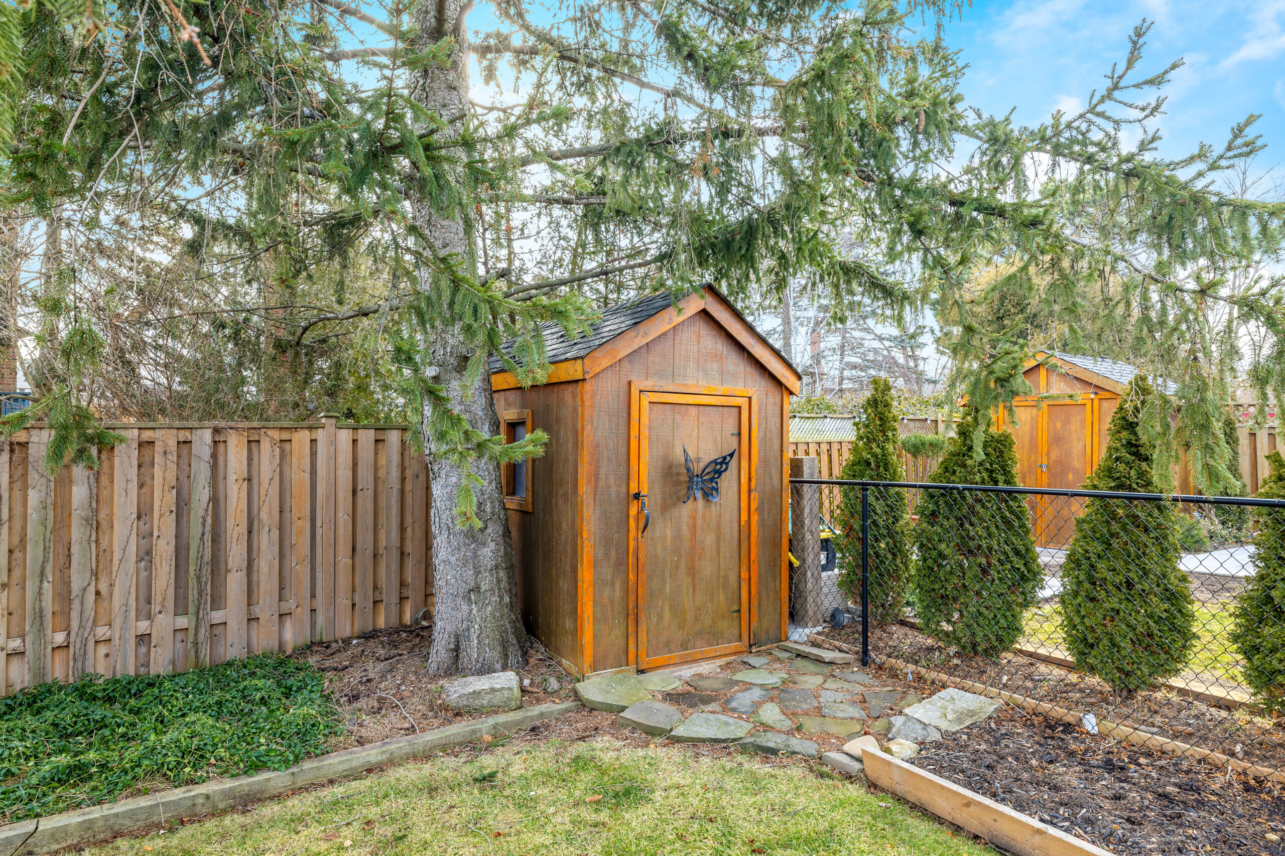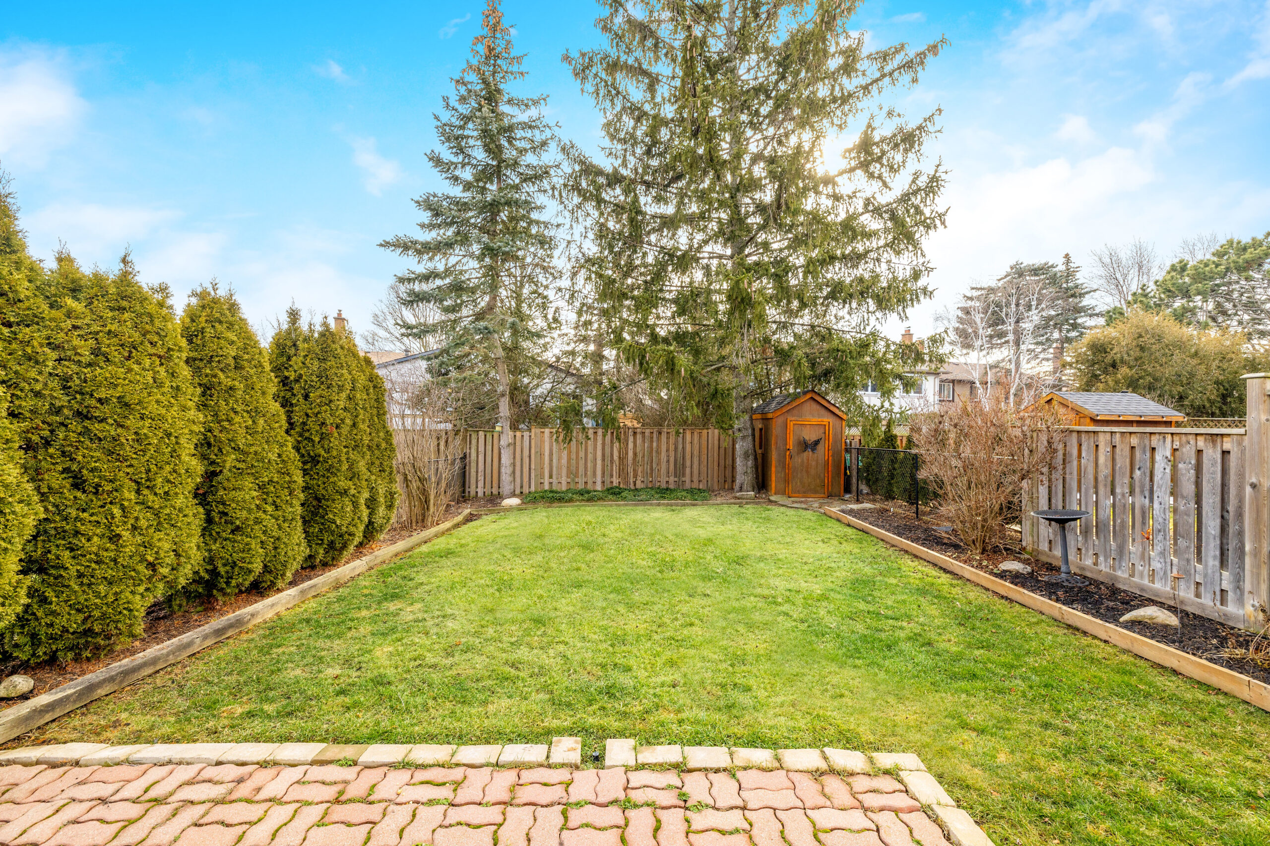 The home boasts an updated kitchen, a jacuzzi tub in the upstairs bathroom, and no carpets on the main and upper levels, offering a blend of modern comfort and convenience. Additionally, the large backyard features a roll-out awning, well-maintained landscaping, a large shed, an interlock patio, and an irrigation system for both the front and backyard.