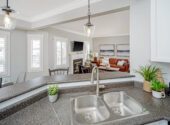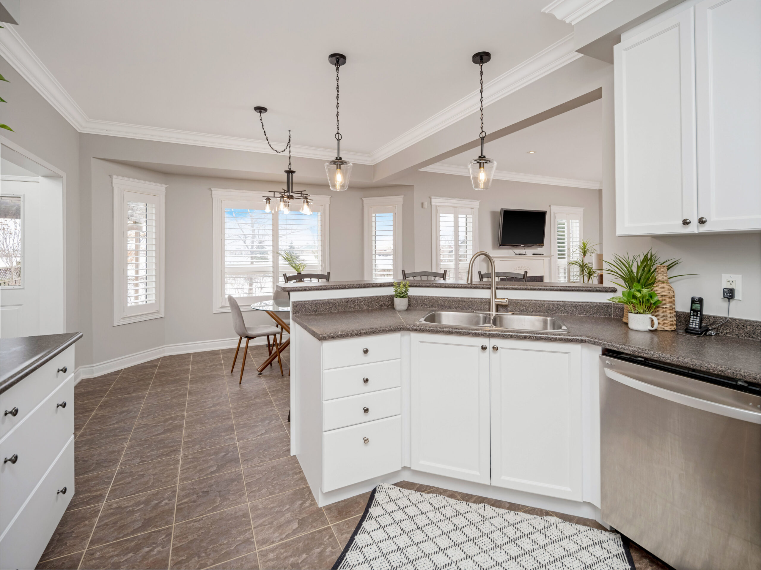 The open concept family room has a gas fireplace and lots of natural light, so you can enjoy cozy evenings and bright, sunny mornings.