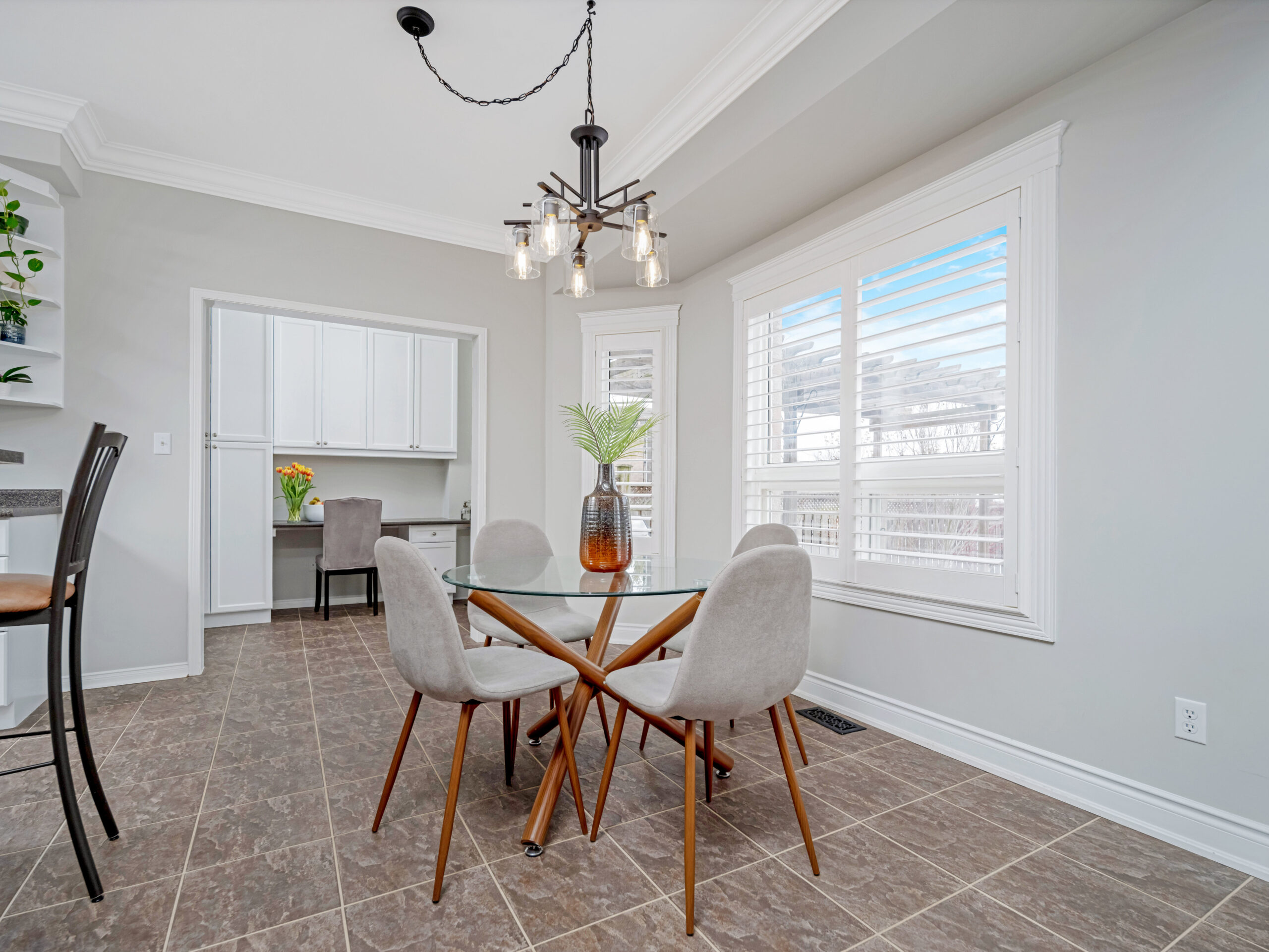 You’ll be impressed by the crown moulding, wainscoting, upgraded baseboards and window casings, and California Shutters on this level, too.