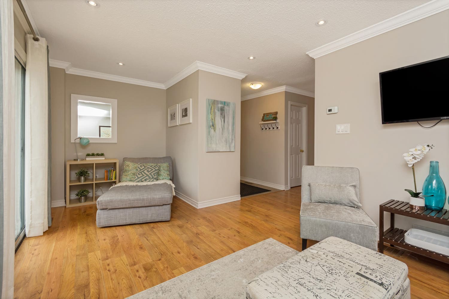 The home has three bedrooms, three washrooms and a finished basement. Enjoy entertaining or watching a movie in the cozy bright living room. Prepare culinary delights in the recently renovated kitchen near the dining area. Celebrate special moments on the brand new deck with family and friends. The owner invested in relevant upgrades in the unit, such as the furnace and air-conditioning units.