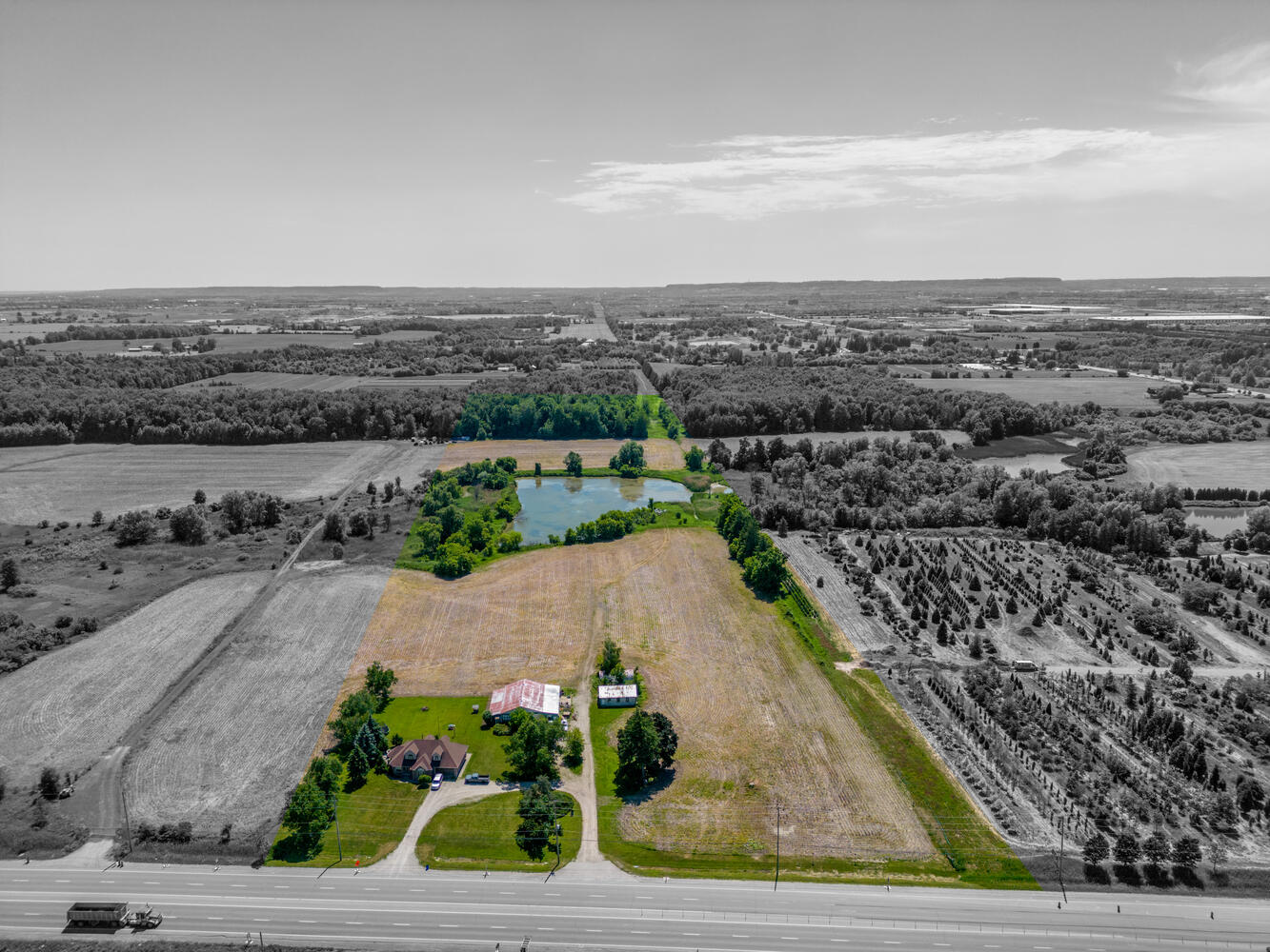 Even further southeast, this property has a total of 95 acres, of which 37 acres towards the front are developable, likely on a 20-30 year timeline. The back of the property has forests and protected land. Recently sold for $26 million, this property provided our closest estimate of value for the area between the pond and forest at 6626 Trafalgar Road at $600,000 per acre, since they are likely on the same distant development timeline.