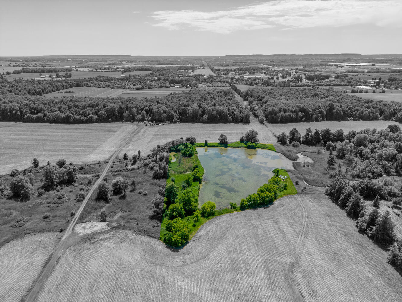 3. A man-made pond in the middle of the land at 3.7 acres. This area is “Natural Heritage”, and will likely not be approved to be filled in or changed.