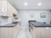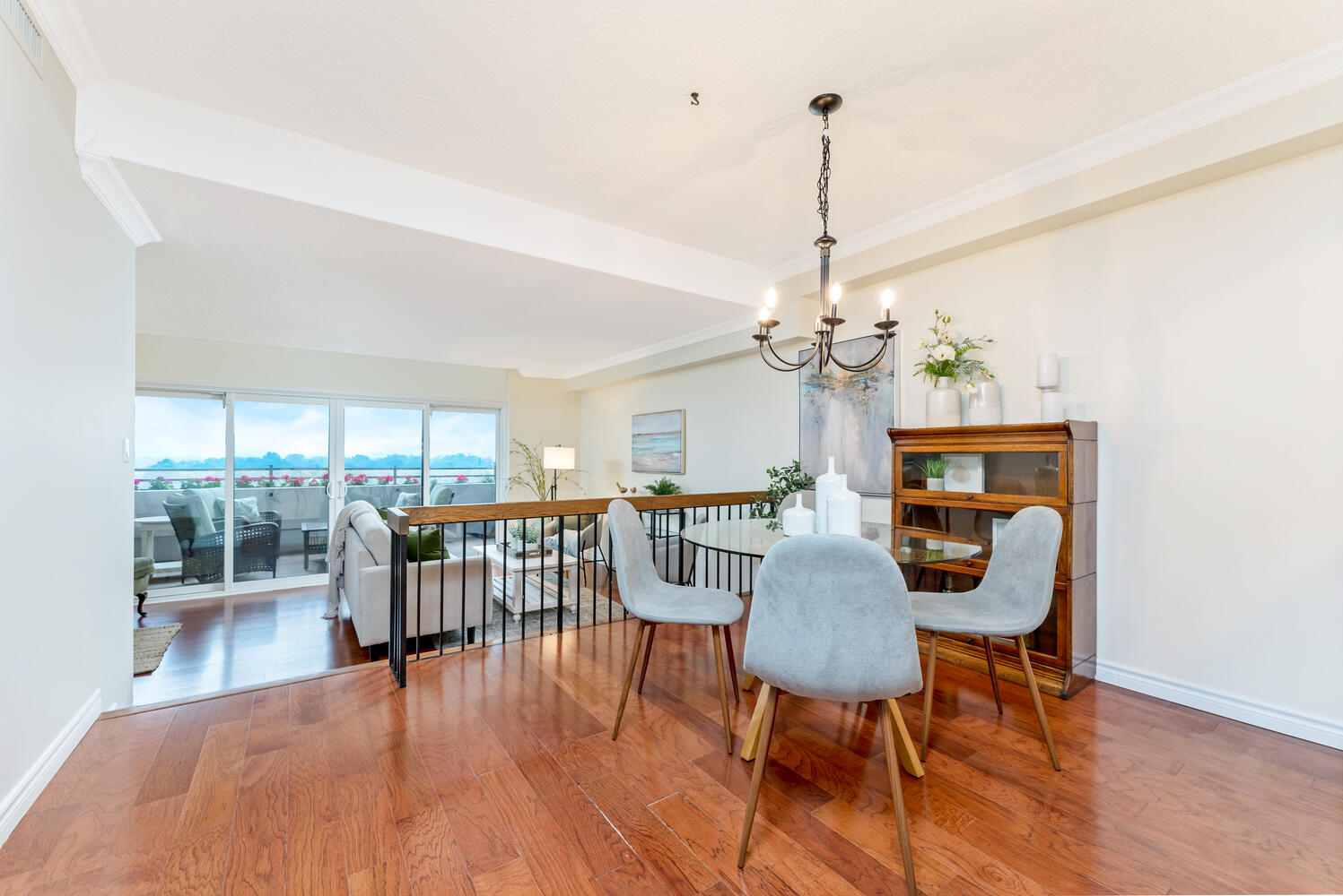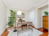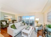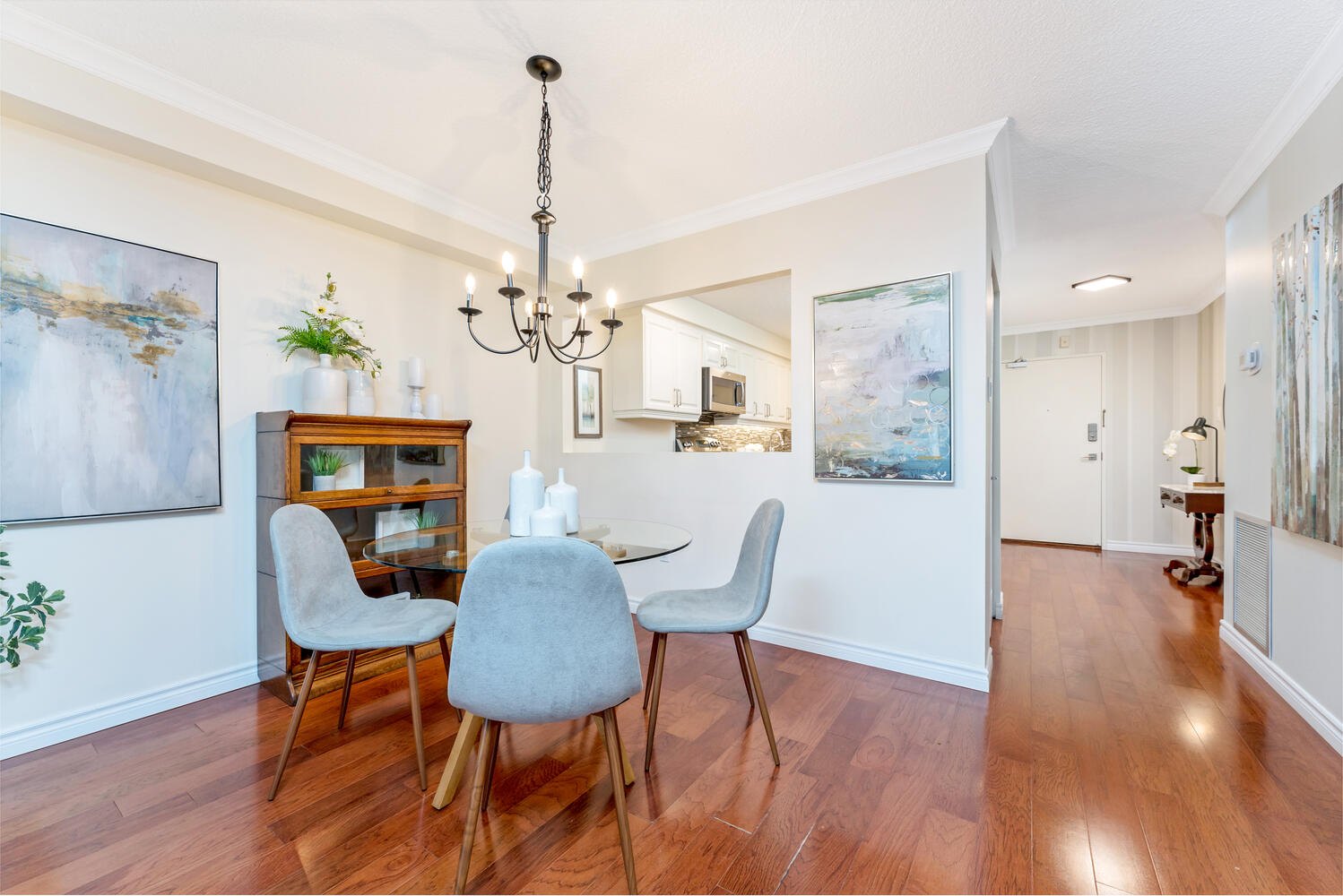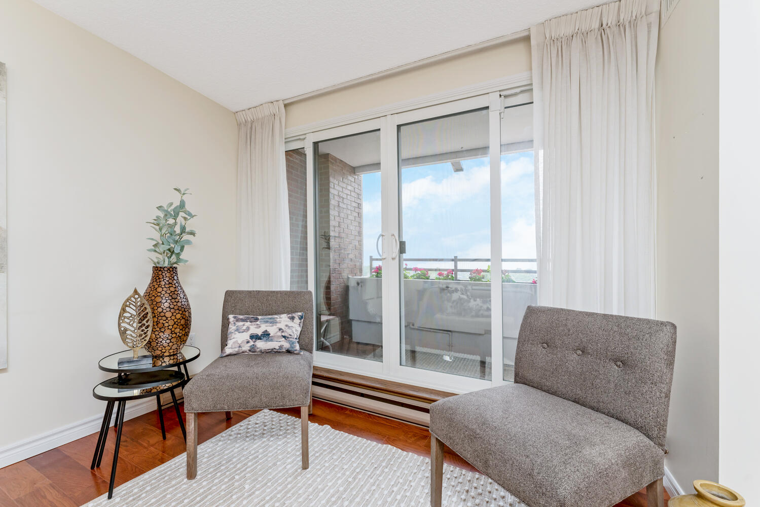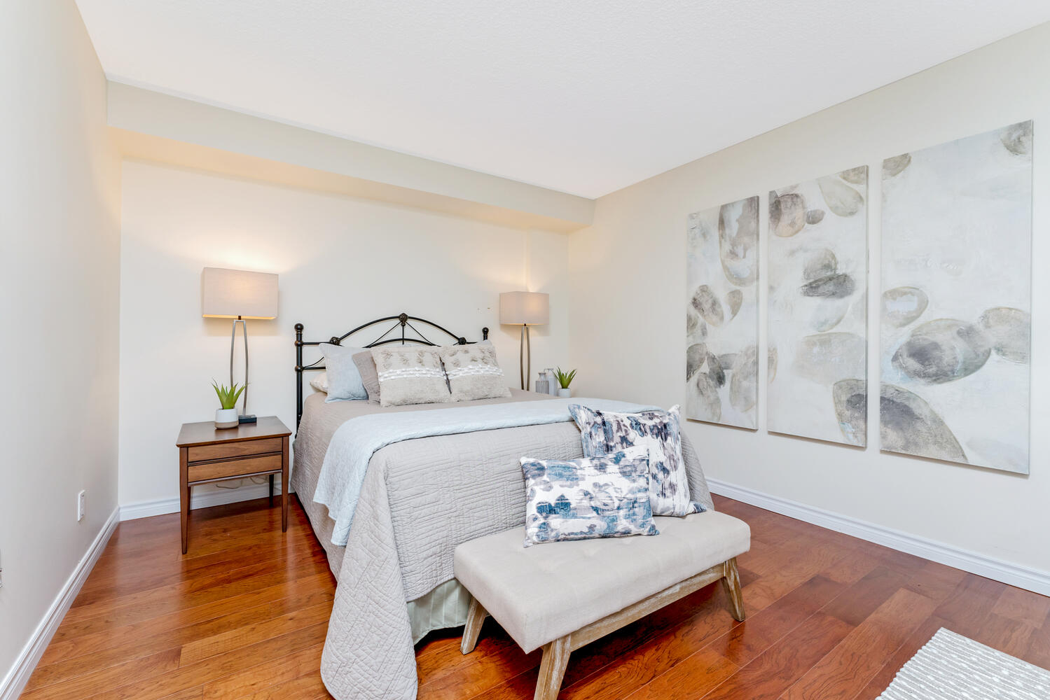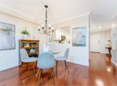 This immaculate 2+1 bedroom, 2 full bathroom condo, is a generously-sized corner unit with top quality finishes and a delightful location in the southwest Clarkson neighbourhood of Mississauga. There’s a separate dining area with a living room that leads to the massive 100+ square foot balcony for fresh air and beautiful views of the Toronto sky-line on clear days. There’s also a second sizeable balcony off of the master bedroom. The renovated kitchen has white cabinets, granite counters, a modern backsplash, and stainless steel appliances. The den, opposite the dining room, is filled with natural light and can easily double as a home office if needed.